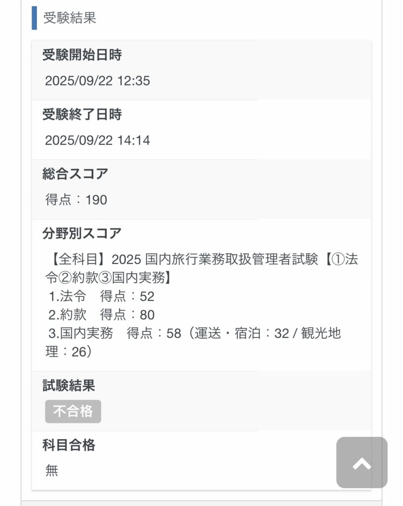 【落ちた】2025年国内旅行業務取扱管理者試験・合格発表!