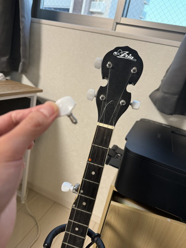 ごめんよバンジョー…思えば私が初めて一人暮らしを始めた部屋で迎え入れ、5回の引越しを経ても無傷でここまで来てくれたバンジョー。購入したのはもう5年前ですが、経年劣化もあったのか、はたまた先日の引越し業者が荒かったからなのか。真実はもはや知る由もありませんが、とにかくこれで2弦のチューニングが不可能になった5弦バンジョーが爆誕しました。