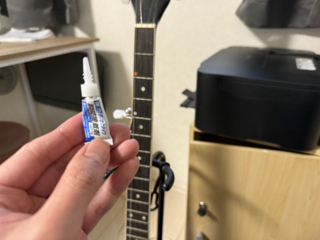 一応瞬間接着剤を買ってきて応急処理的にくっつけてみることにします。でもさ、冷静に考えてチューニングの度にくるくるくるくる回す部分なんだから、瞬間接着剤でくっつけたところですぐにまたとれちゃうよね。溶接とかしない限り使える状態にはならないでしょう。