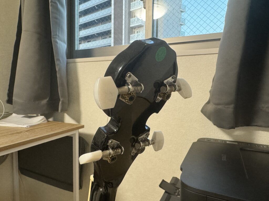 しかし思えば4か月の無職期間にも一度も触れることはなく、今では立派な部屋のオブジェとなっているバンジョー。せめてもの誠意として、もとある姿に戻しておいてあげるのが、持ち主の筋ってやつです。