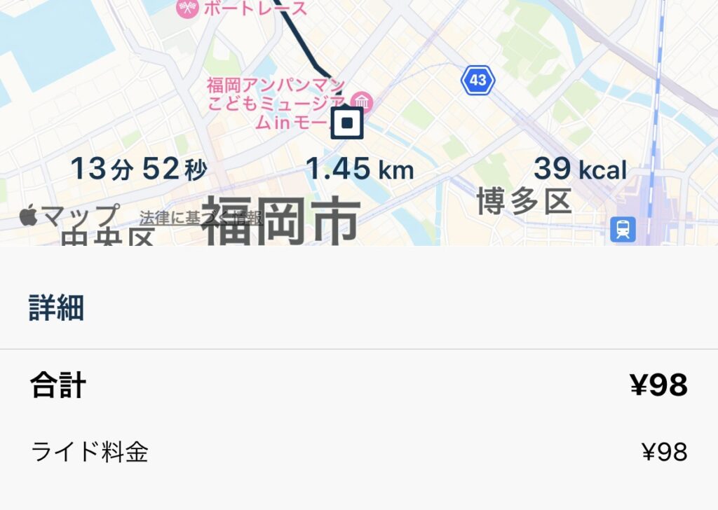早速会員登録して乗ってみます。これがまぁ便利だし安いし、出会えてよかったです。1分7円なので15分くらいの移動で約100円。