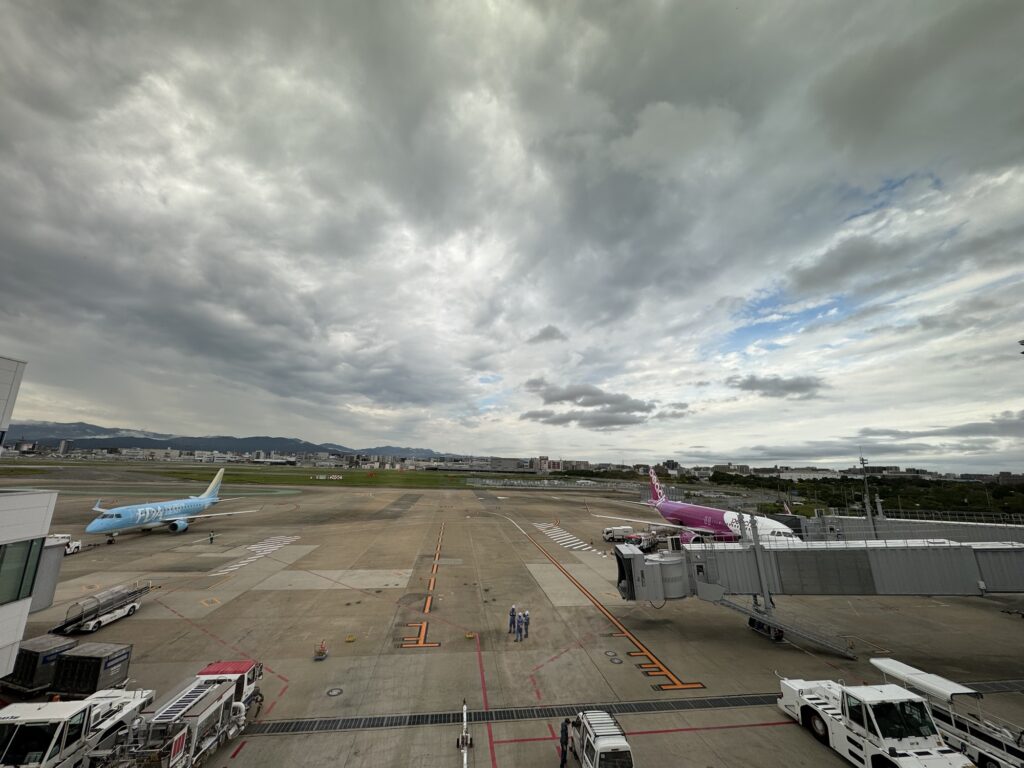 街にほど近い珍しい空港だけあって、たしかに空路のすぐ向こうは建物だらけ