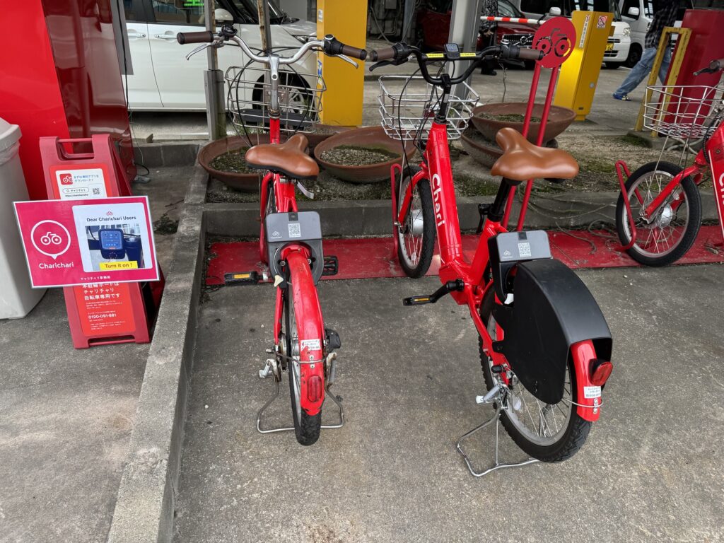 駅まで戻ろうとする道中で、レンタサイクル的なものを発見。チャリチャリというサービスなんですが、どうやら借りた自転車は他の同じチャリチャリスポットに返していいみたい(ようするに乗り捨て可能)で、まさに今の私が求めていたサービスそのものでした。駅までまた20分かけて歩くの、さすがにしんどいですからね…。