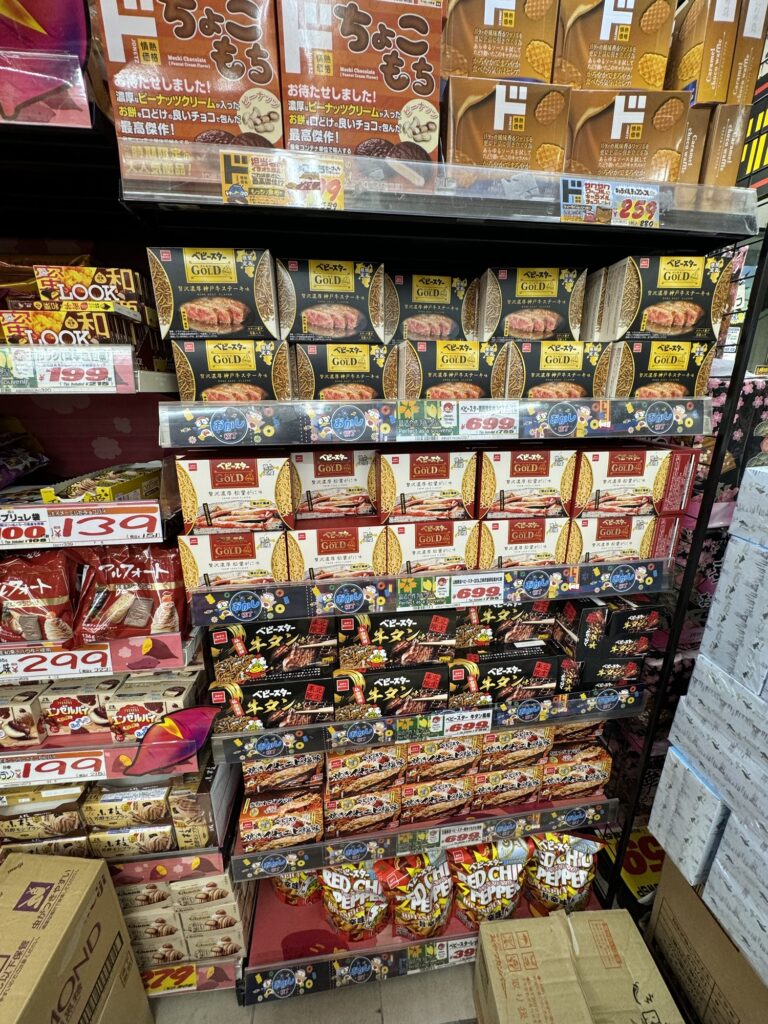 海外客の方で賑わっていて、体感8割は外国人旅行客だったんですが、そのためか福岡土産っていうか日本各地のお土産が売っていて、しかも東北限定みたいな地方限定の商品が普通にいっぱい売られていて笑いました。地方限定とは。