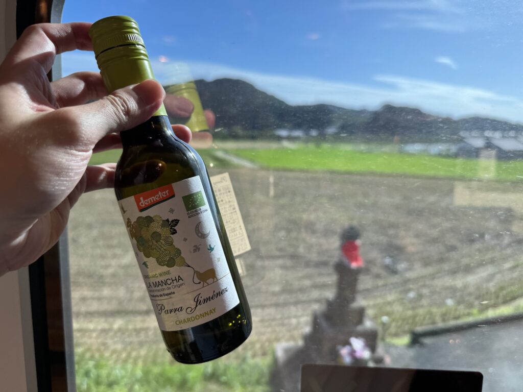 江北という駅からはとても空いてる電車に乗り換えたので、昨日の夜買ったけど飲めずにカバンに入れておいた白ワインを嗜みながら車窓を眺めました。これができるから電車移動っていいんだよね。