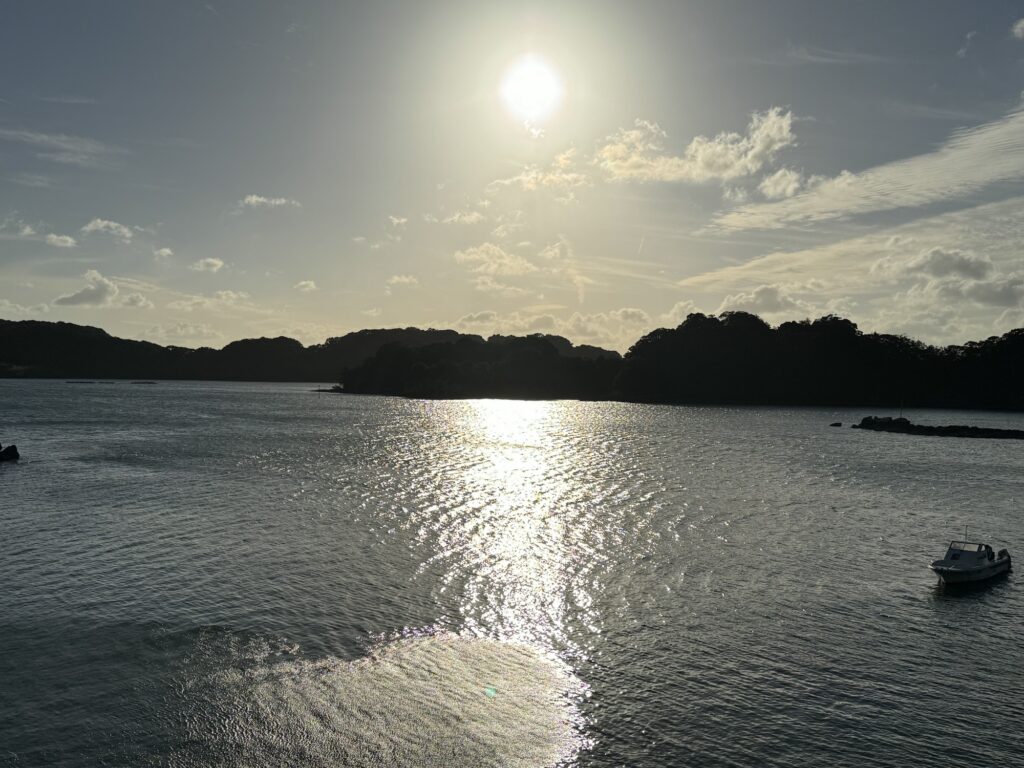 ちょうど陽が沈み始める時間帯。夕日が光る海岸は絶景でしたね。平日の夕方だけあってあまり人がいないのも最高。