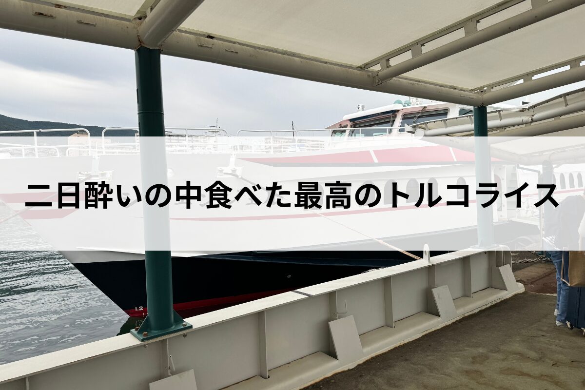 高速船は座席指定されていましたが、人はまばらで全体の1割くらいしか埋まってませんでした。窓際の席で海を眺めながら乗っていたのですが、これがまぁ揺れる笑