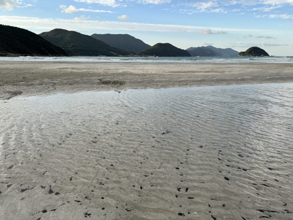港に到着した時は曇ってたので、これなら散歩とかできそう。体調もだいぶ良くなったので、散歩がてら歩いて2〜30分ほどの蛤浜海水浴場という海岸に行ってみることにしました。