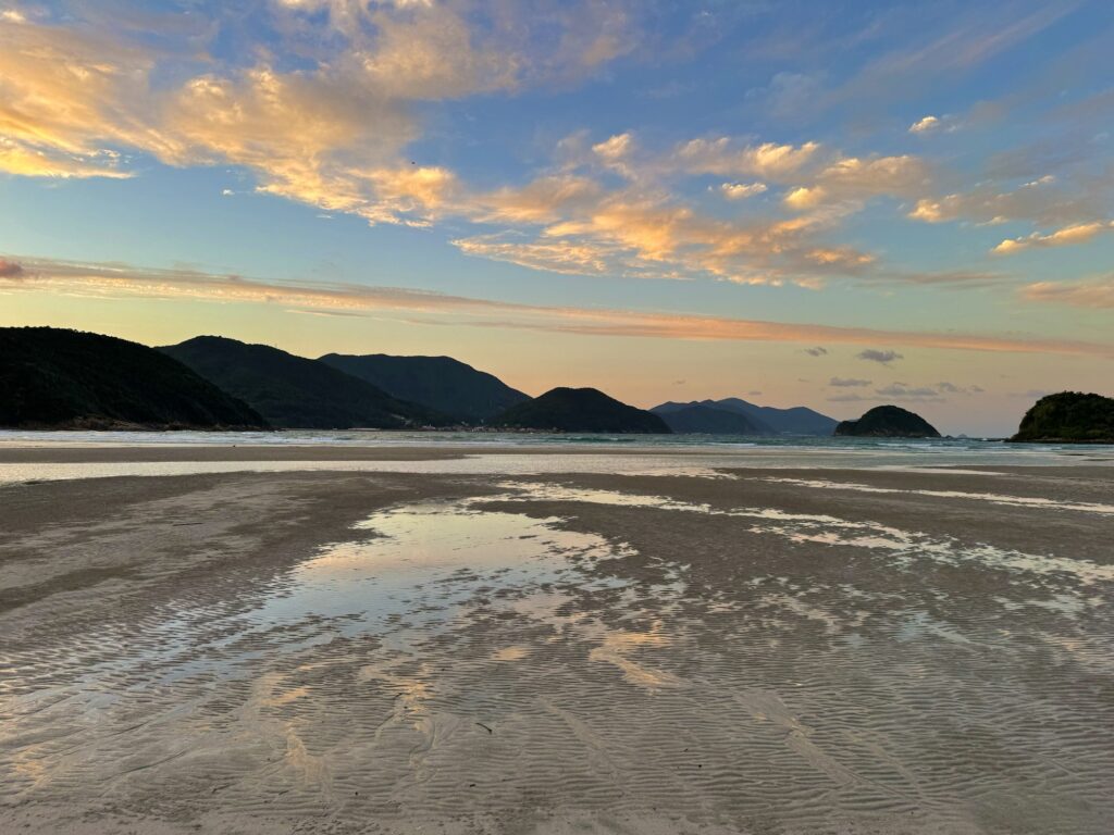 日没時間間際は海辺の空間全体がピンク?オレンジ?なんとも表現し難い色に染まり、すごく幻想的な空間になりました。これは写真には残せない素晴らしさがありました。人も少ないし、めちゃくちゃいい時間でした。