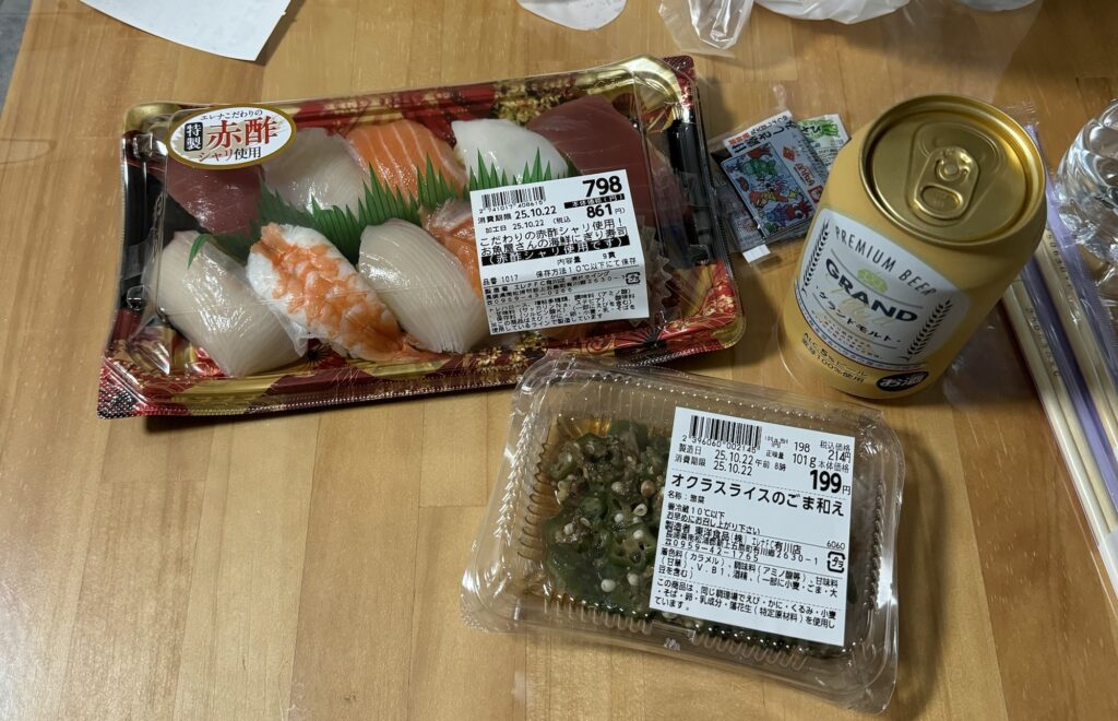 寿司とビール調達