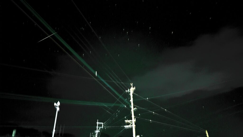 そんなこんなもあって、なんとか指の血を止めてシャワーを浴びたら速攻就寝したんですが、夜の22時頃に目が覚めて窓の外を見ると、なかなか星がキレイでした。