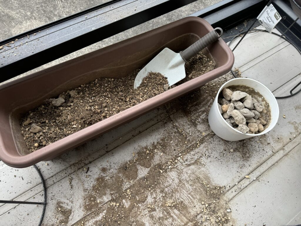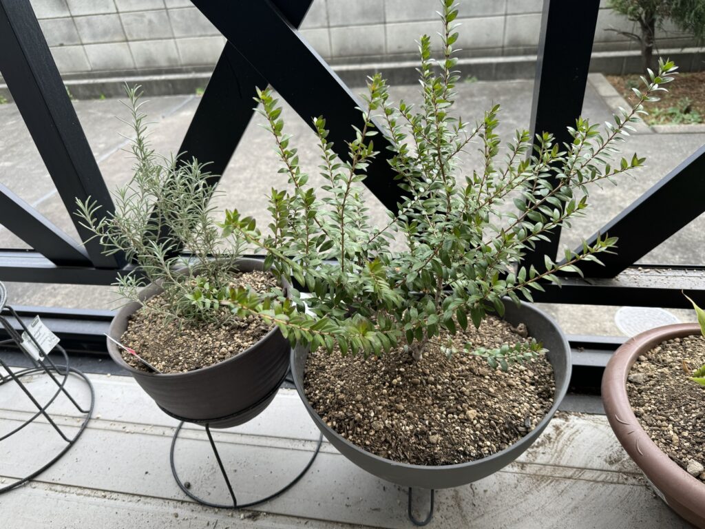 というわけで、当初寄せ植えしたプランターにはローズマリーとドワーフマートルが生き残ってくれたわけですが、明らかに窮屈そうなのでローズマリーを植え替えることにしました。今なら空いたプランターがたくさんあるから、部屋、選び放題だよ!よかったね!!