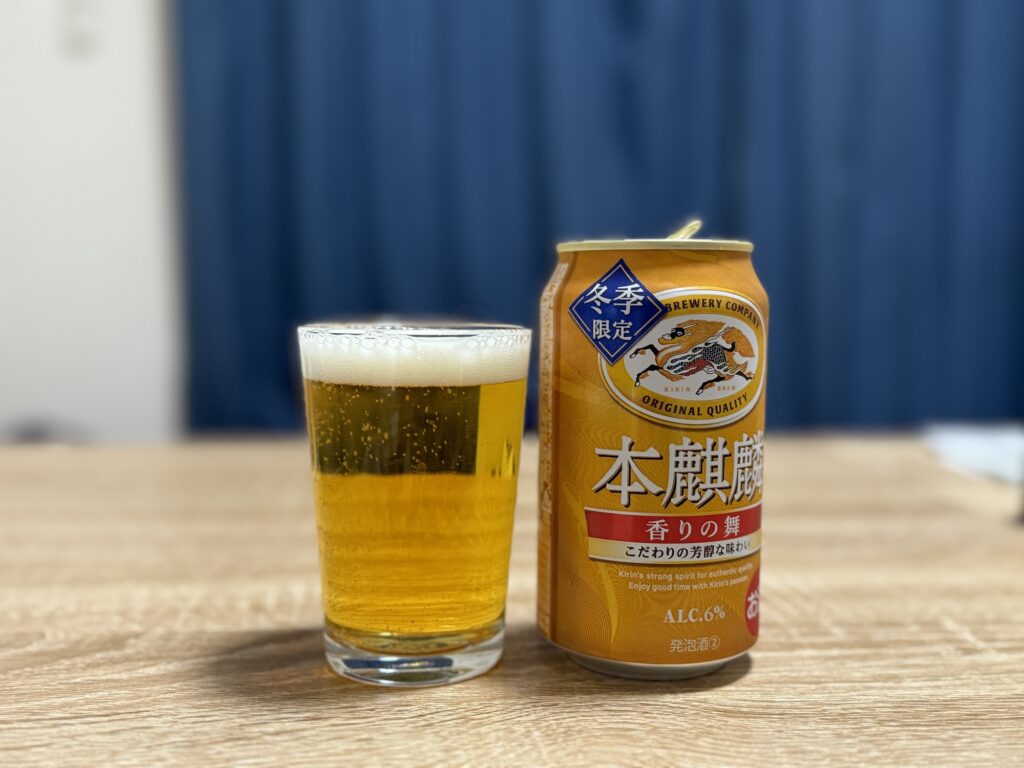 キリンビールのプレスリリースによると、本麒麟 香りの舞は本麒麟ブランド初の期間限定商品として2022年、2023年と発売していたらしいです。去年も似たような商品を飲んだと思ってたんですが、去年飲んだのは「味わい濃厚 冬仕立て」でしたね。