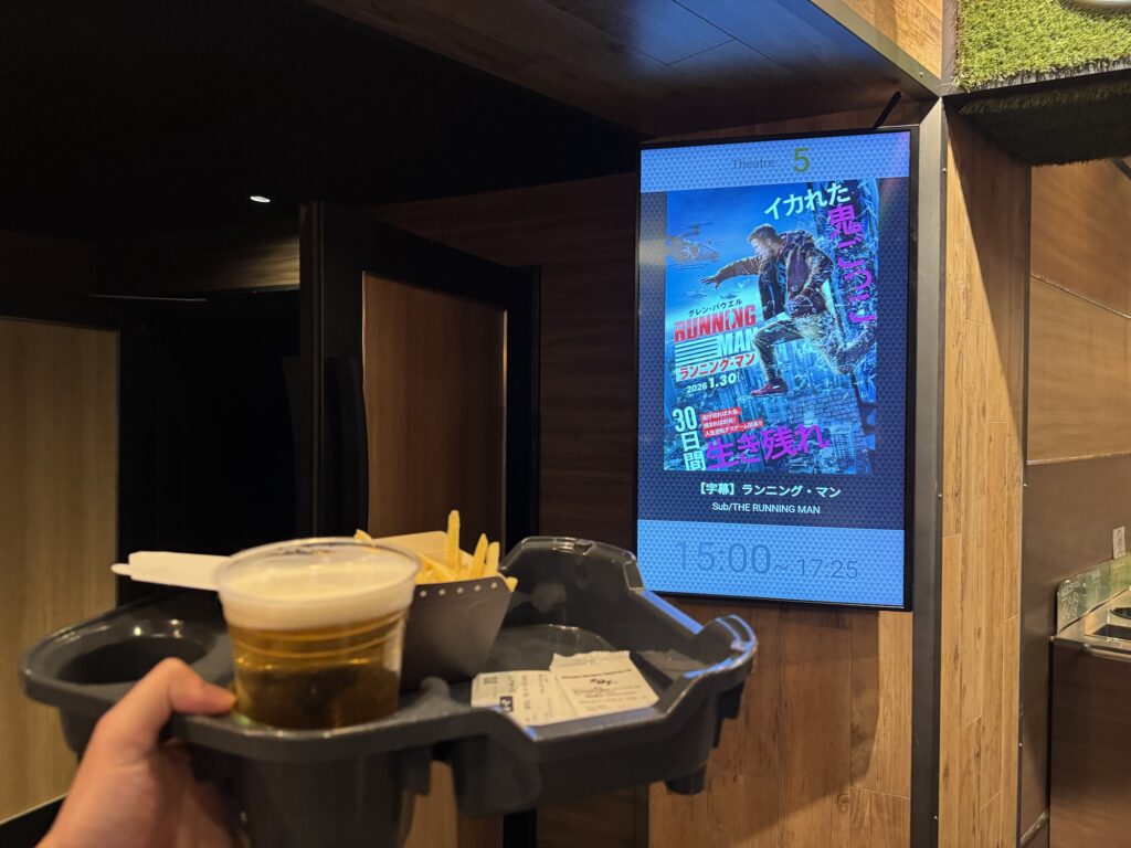 飲食売店でポテトとビールを購入してスクリーンへ。ポテトはなかなか美味かったです。ビールはアサヒマルエフ。
